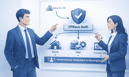 Det gör att organisationens befintliga användarkonton kan användas direkt i VPBase-applikationer. Användarna kan då logga in med samma identitet som de redan använder i organisationens övriga system.